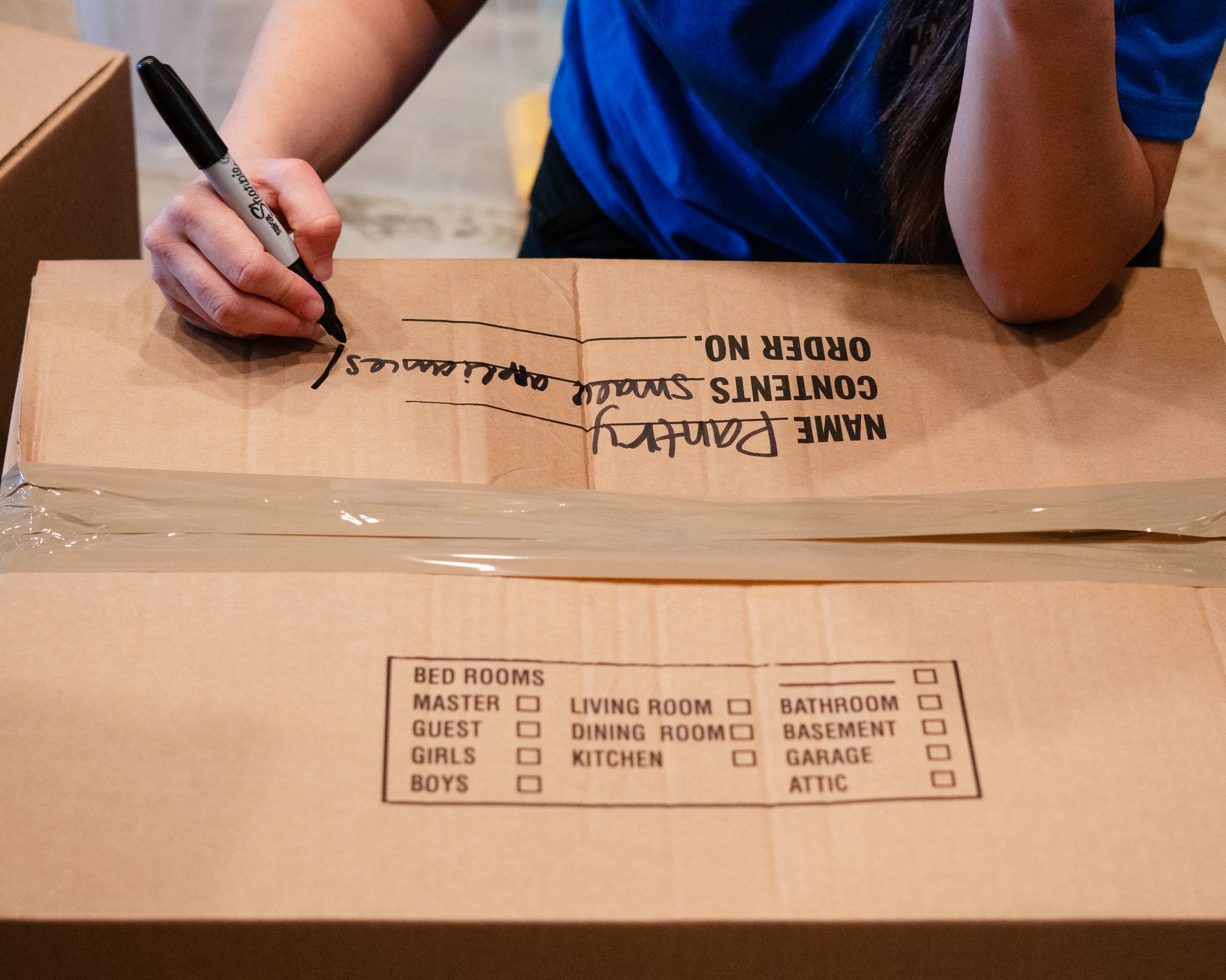 Fill boxes completely and seal them with tape. This helps movers stack safely and efficiently inside the truck.